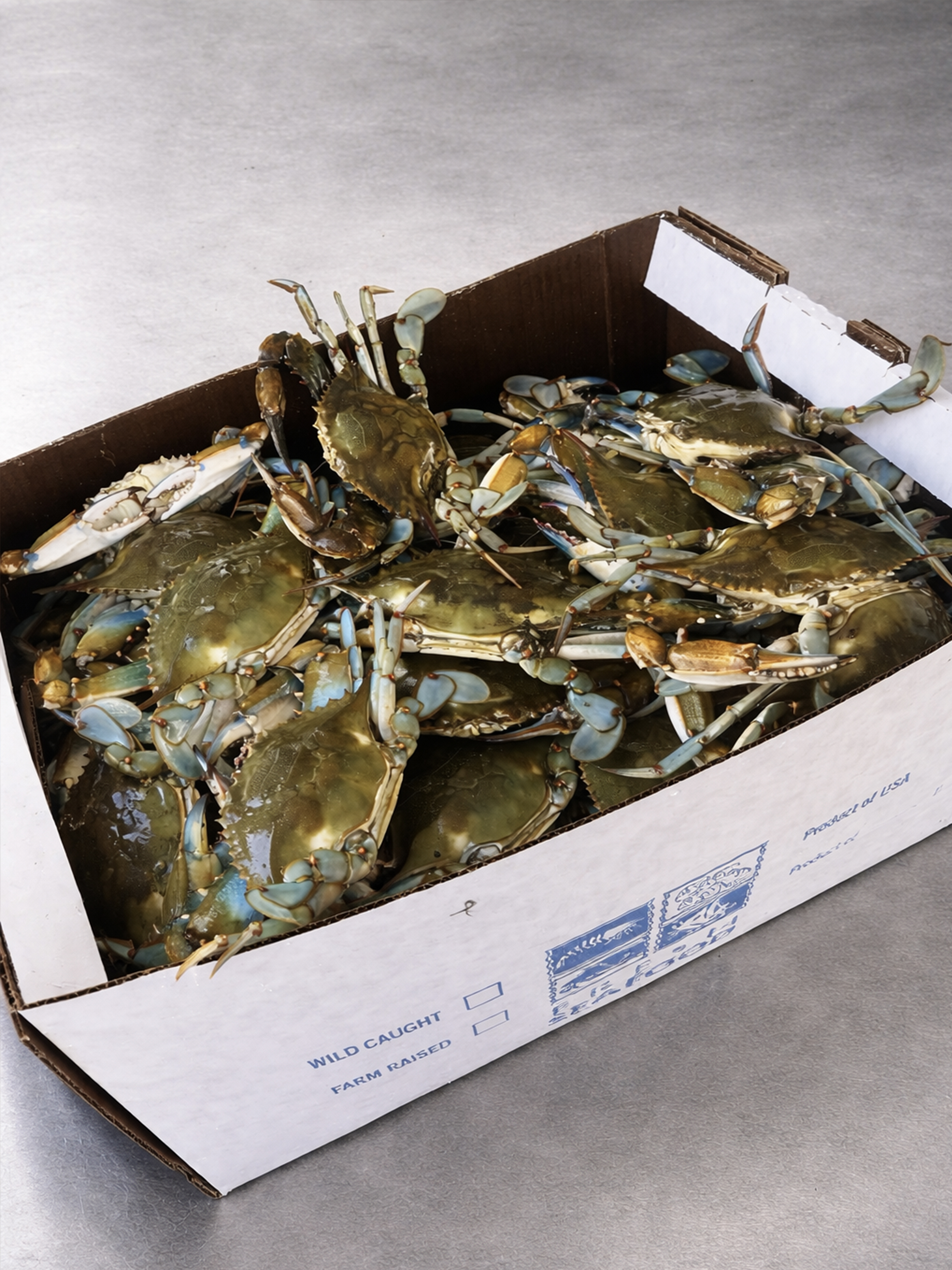Blue claw Crabs are sold by half dozen, full dozen, half bushel, or full bushel.