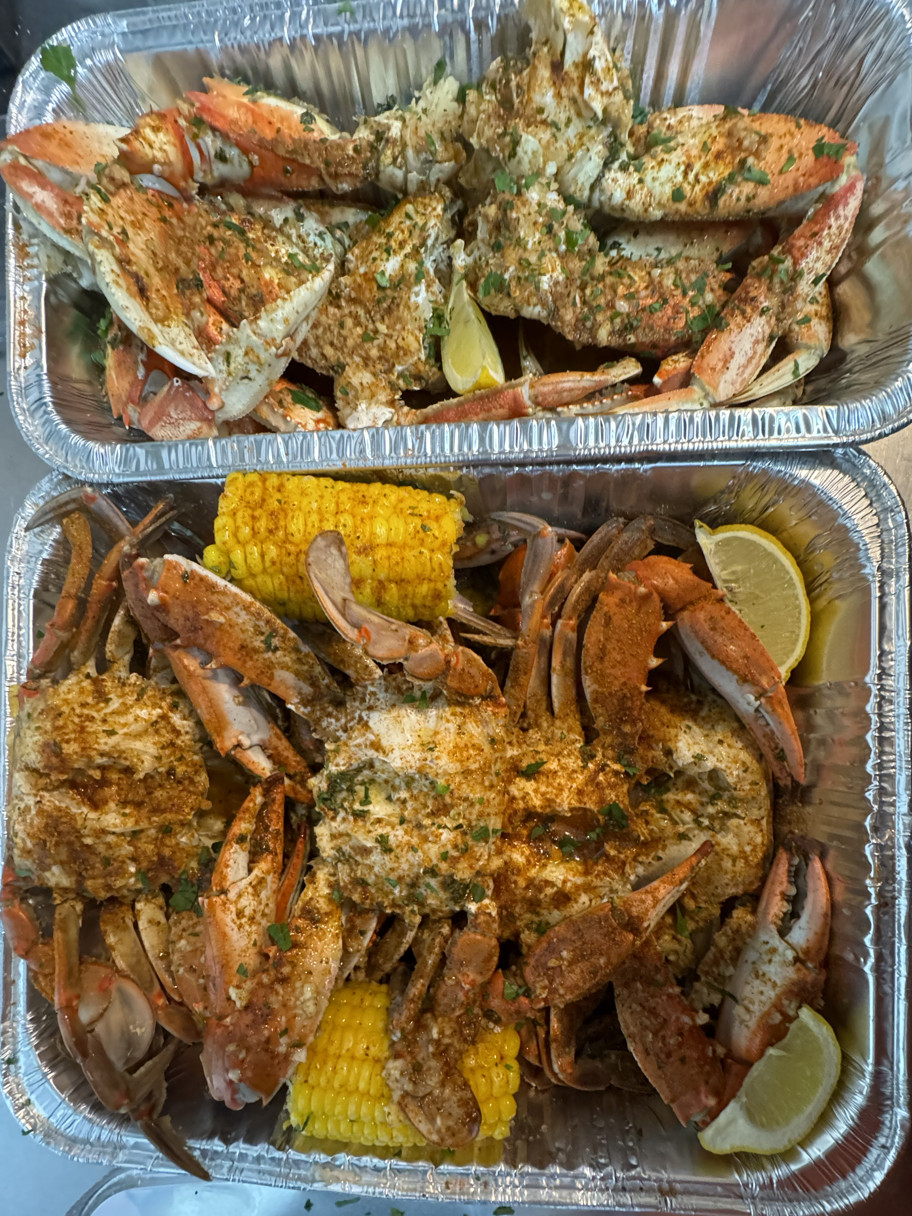 Includes 6 cleaned crabs sautéed in our famous garlic butter, served with a side of corn and your choice of heat level.
